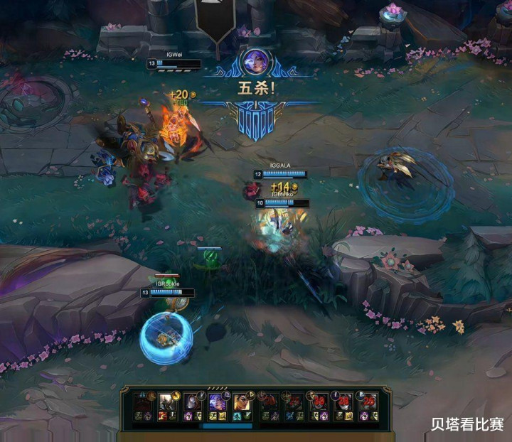 第二局AL上单安蓓萨,打野蝎子,中单阿萝拉,下路卢锡安加布隆;IG上单兰博,打野皇子,中单安妮,下路赛娜加牛头。对线期双方有来有回,前期IG拿到2条小龙,双方经济基本持平。